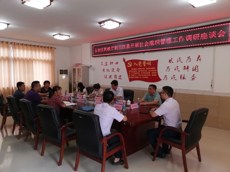 7月16日,自治區民政廳社會組織管理局副局長陳科吉等一行4人到我縣開展社會組織工作檢查調研,三江縣民政局副局長馬安秀、民組股股長石文昌等陪同調研。