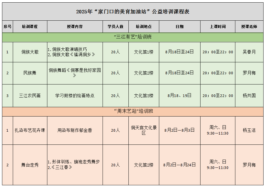 詳情見《2025年“家門口的美育加油站”——“三江有藝”、“周末藝站”公益培訓(xùn)招生計劃表》